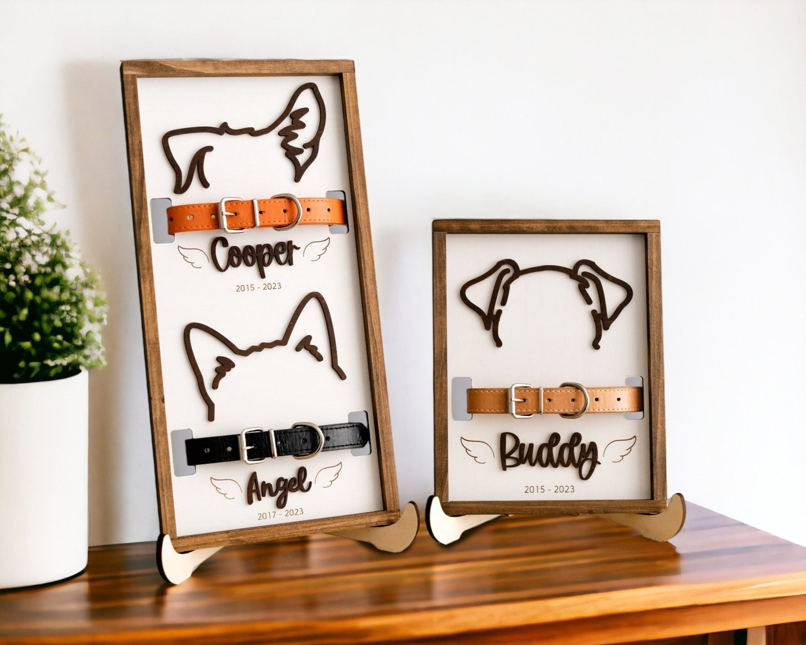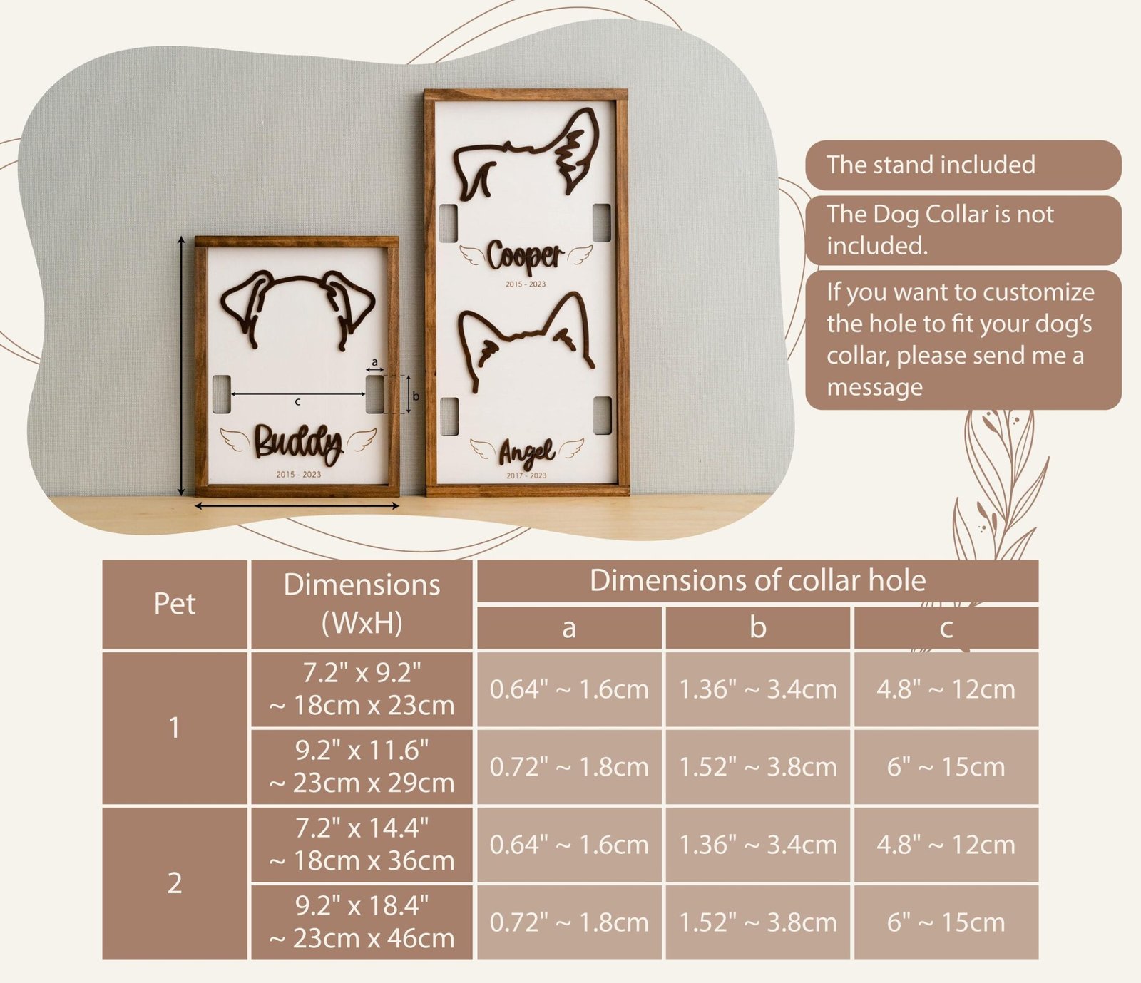 - Collar Holder Design – Securely display your pet’s collar to preserve their memory in a meaningful way.