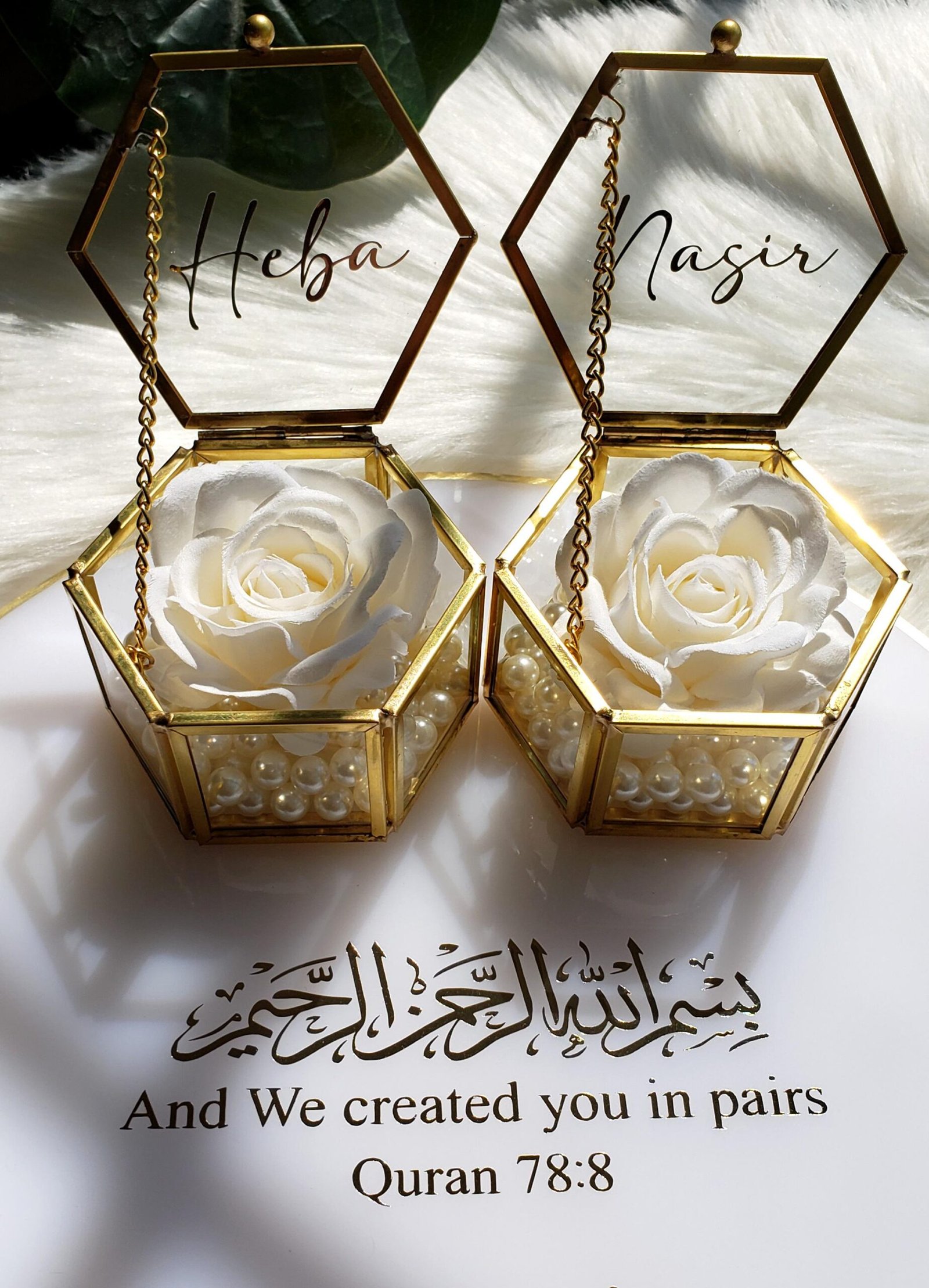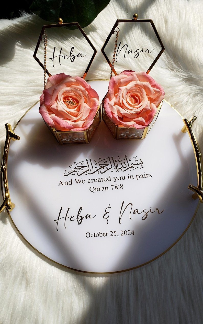 Unlike ordinary trays or boxes, this combination merges utility with beauty. The tray adds grandeur to the ceremony, while the transparent glass box frames the rings like priceless treasures. It’s the perfect blend of tradition and modern aesthetics, making it a must-have for contemporary couples.