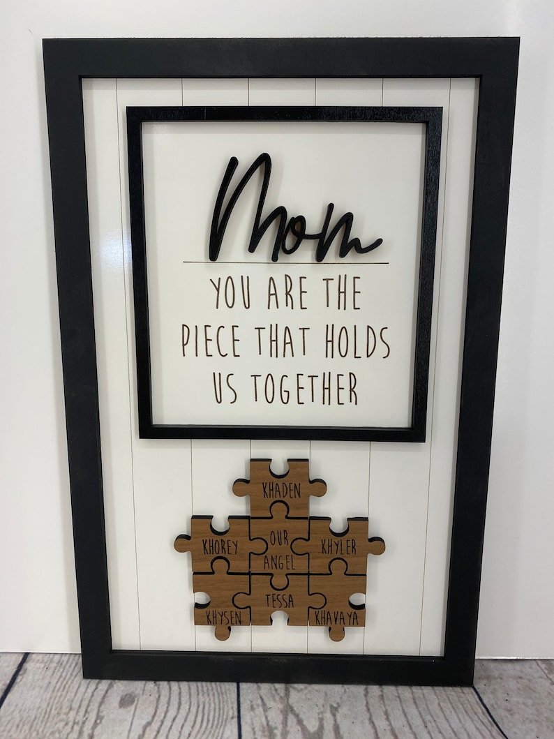 Looking for a heartfelt and unique gift for Mom, Grandma, or a special woman in your life? The custom engraved wood puzzle sign is a perfect choice! Crafted from high-quality wood and custom engraved with your choice of message, this puzzle piece sign is a wonderful addition to any home.