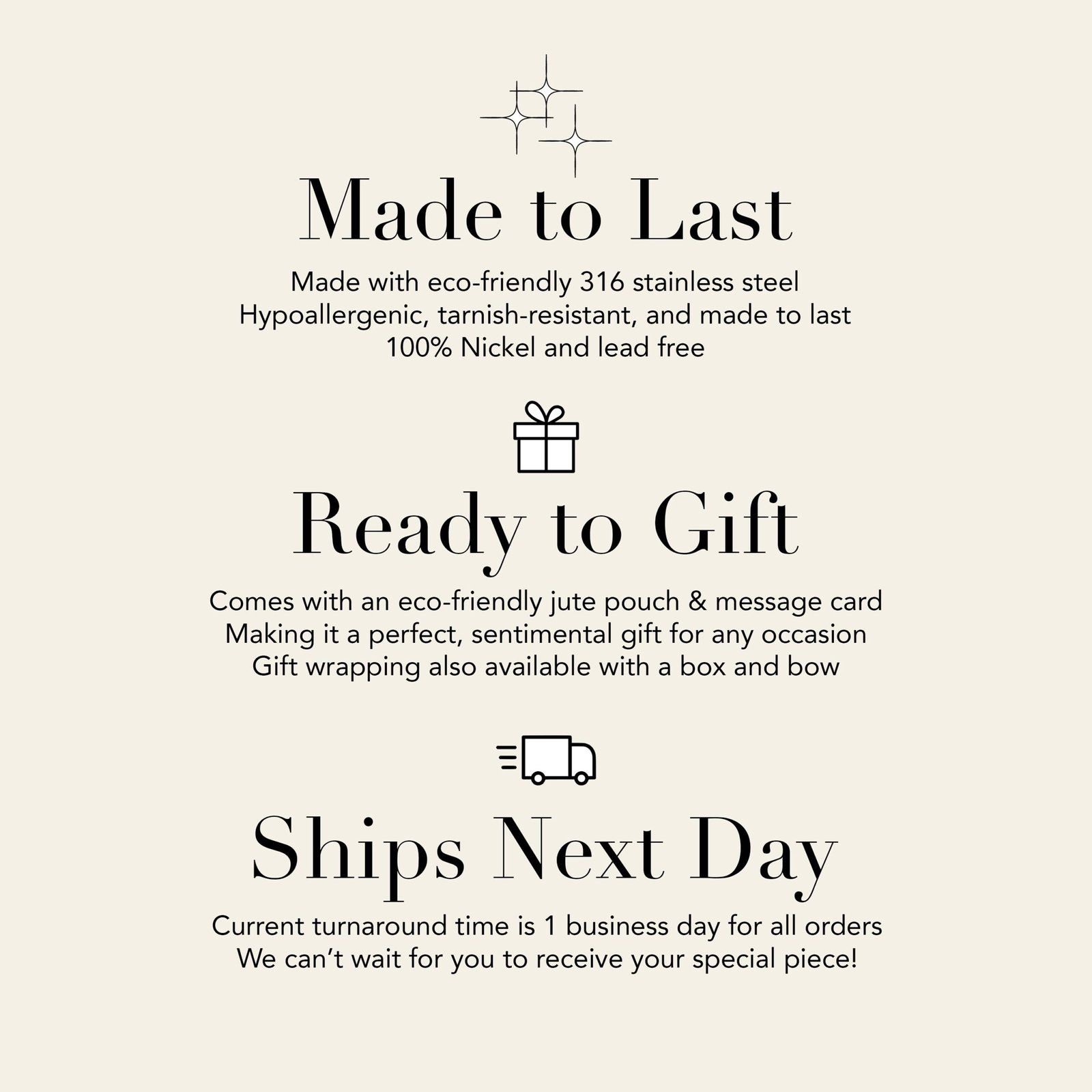 - Place your order, and we’ll lovingly handcraft and ship your necklace, complete with gift-ready packaging.