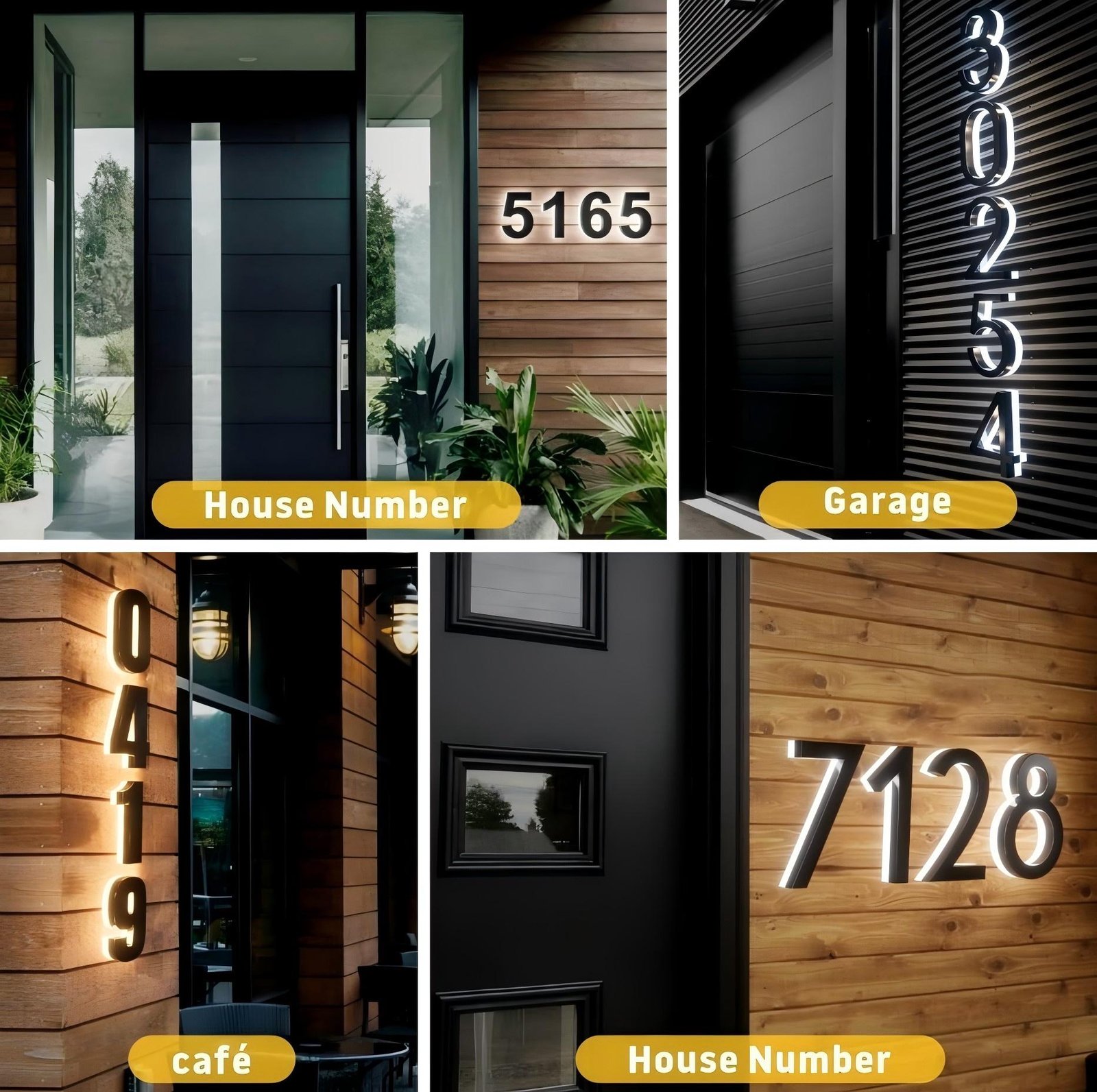 - 🔆 LED Backlit Illumination A warm or cool glow (depending on your choice) lights up your personalized numbers, ensuring excellent nighttime visibility from the street—ideal for guests, couriers, emergency services, and visitors.