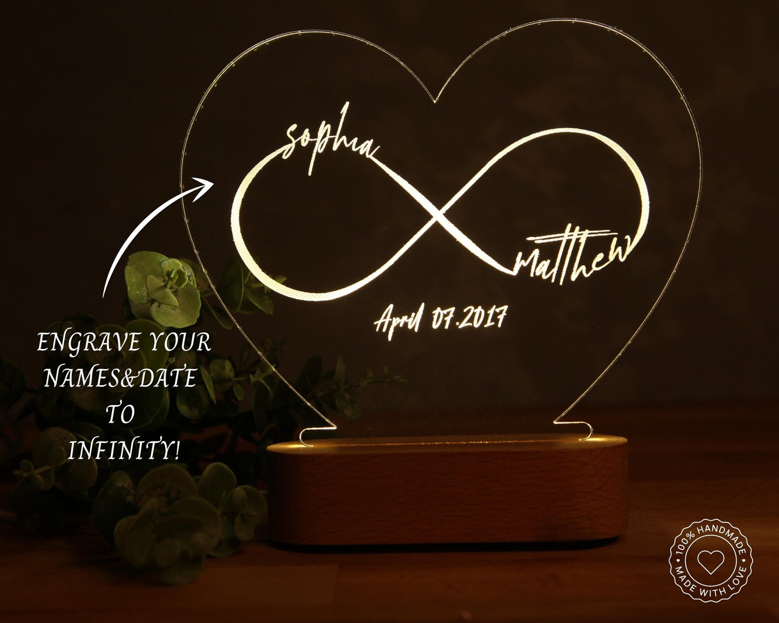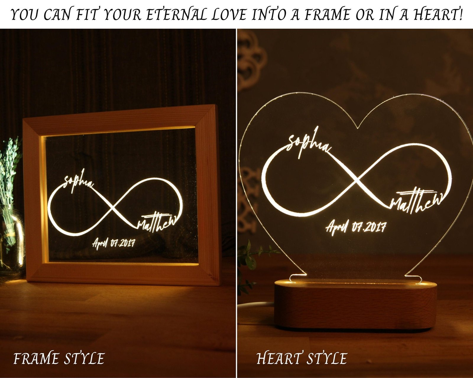 ♾️ CUSTOM INFINITY NIGHT LIGHT This night light is for those who cannot keep inside their eternal love! Just as your love illuminates your life, this lamp will illuminate your room like the sun. When your girlfriend/boyfriend/wife/husband is not with you, you will find her/his warmth in this lamp and at the same time, the warmth of your eternal love reflected by the light will help you sleep. After all, can there be a more restful sleep than sleeping in the arms of love?