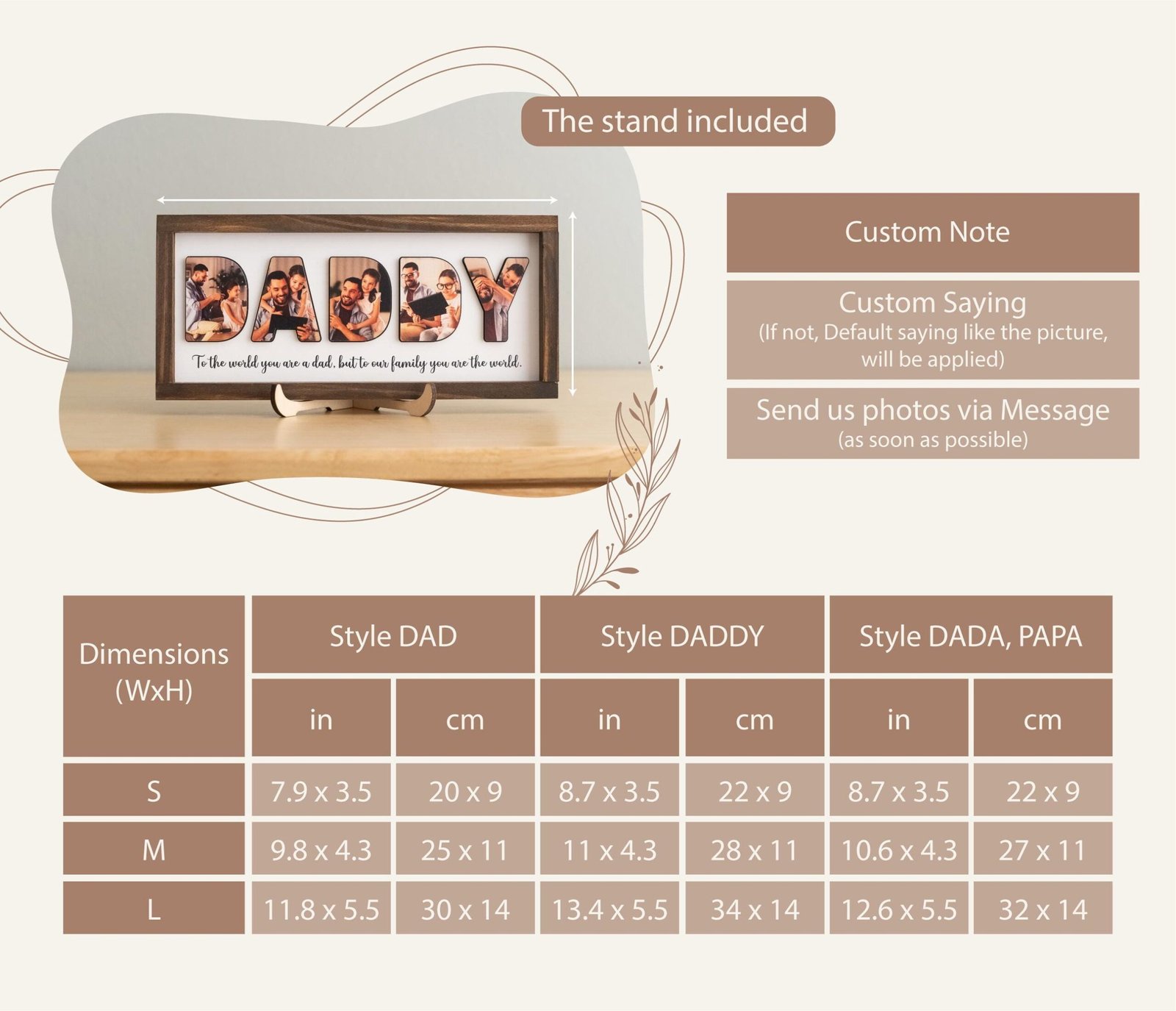- Versatile and Timeless: The wooden photo sign suits any home décor style and can be displayed in Dad’s office, man cave, or living room, keeping your special moments close.