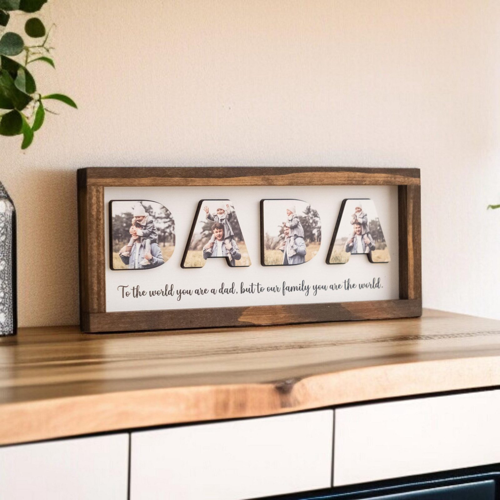 - Perfect Father’s Day Gift: This custom photo sign is a heartfelt and personalized present that will touch Dad’s heart and remind him of the love shared within the family.